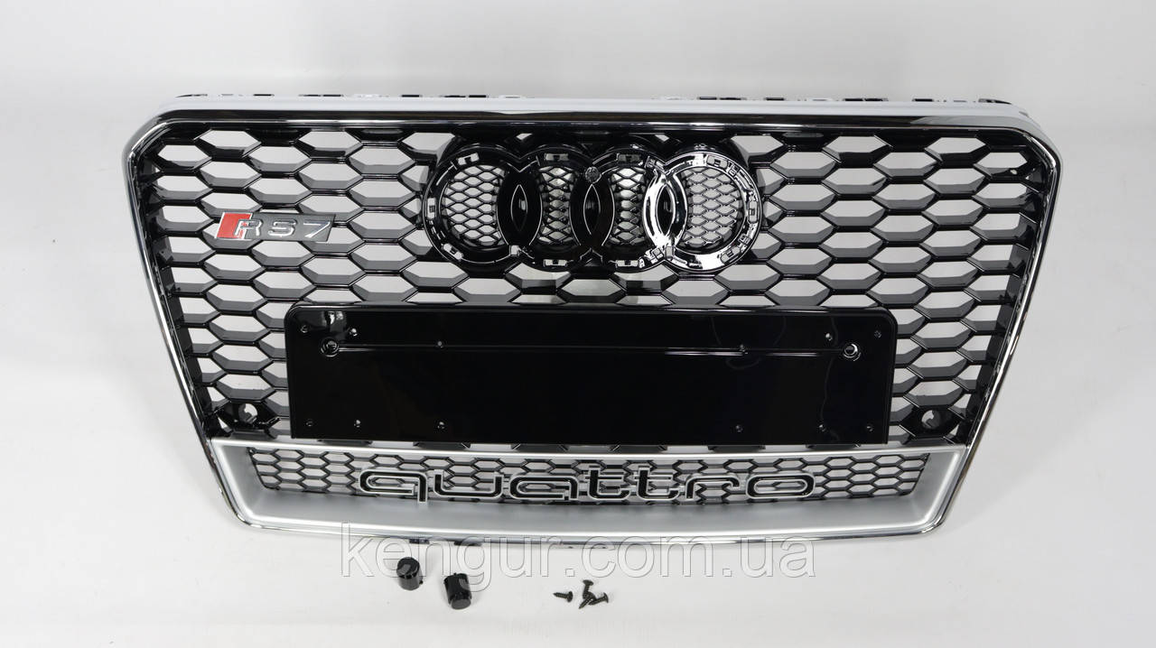 Решітка радіатора Audi A7 2010-2014, стиль RS7 (хром окантовка, чорна сітка, QUATTRO)...