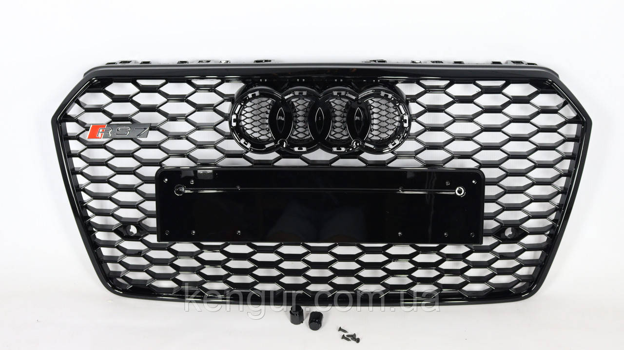 Решітка радіатора, стиль RS7 (чорна окантовка, чорна сітка) Audi A7 2014-2017